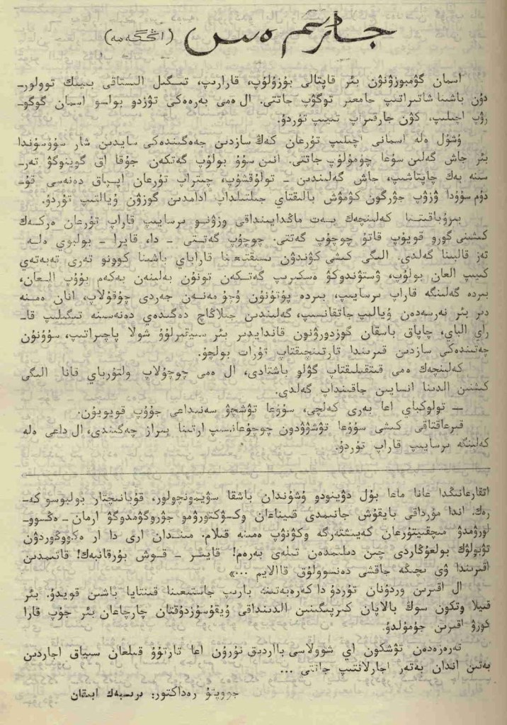 Fırtınalı bir gecede sürü bürküt Uya dağının kuytusunda duruyorlardı. Birden yan taraftaki atlar ürktüler ve ön tarafa doğru kaçmaya başladılar. Kurtlar! Çabdar kurtlara doğru koştu ve atlara saldıran kurdun üstüne doğru koşup şahlanarak heybetli sesiyle kişnedi. Atların peşine düşen kurtlar biraz durakladı ve Çabdar’ın etrafını sardılar. Kurtlar gittikçe çoğalıyordu. Kaçan sürü kendi barınağına girmişti. Evinde oturmakta olan yılkıcı aceleyle giyinip tüfeğini aldı ve atına binerek dağa doğru yöneldi.